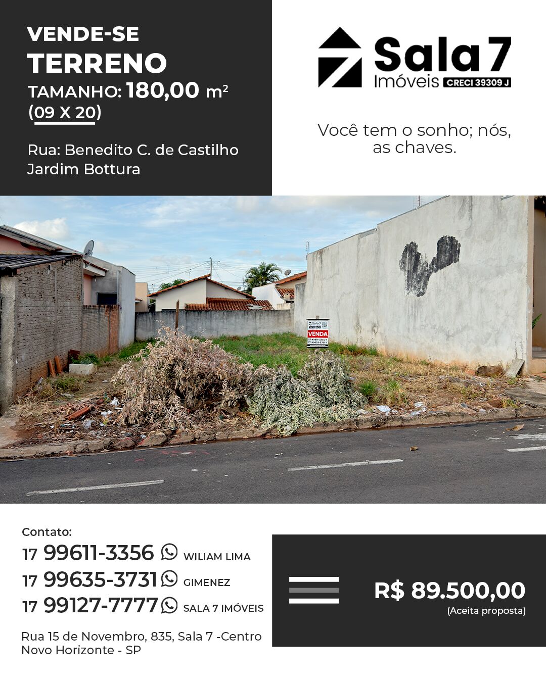 #Sala7Imóveis #NovoHorizonteSP #Imobiliária #CorretorDeImóveis #NovoHorizonte #MercadoImobiliário #TerrenoàVenda #RealizaçãoDeSonho #CasaPrópria #MCMV