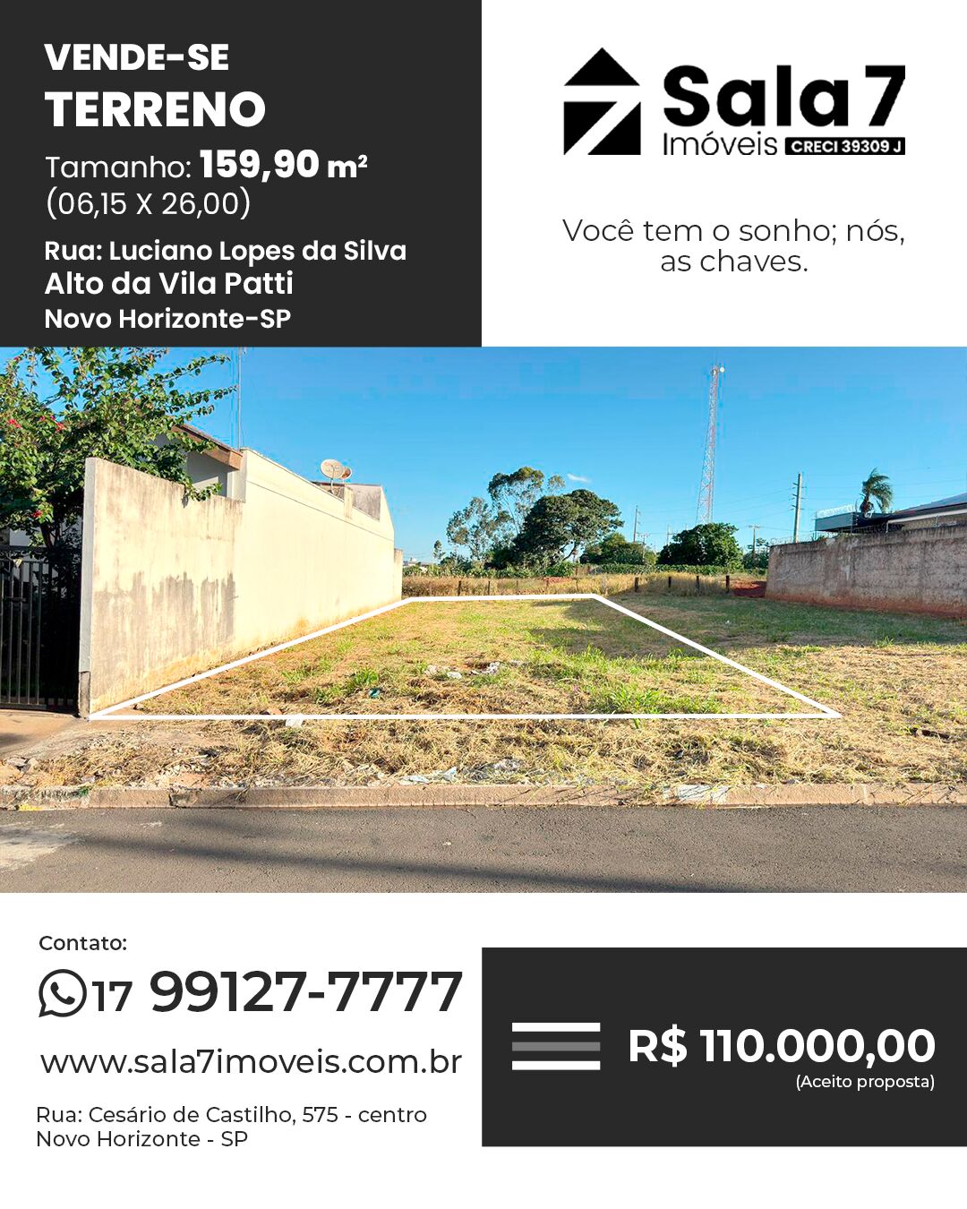 #NovoHorizonteSP #Sala7Imóveis #Imobiliária #VendeSeTerreno